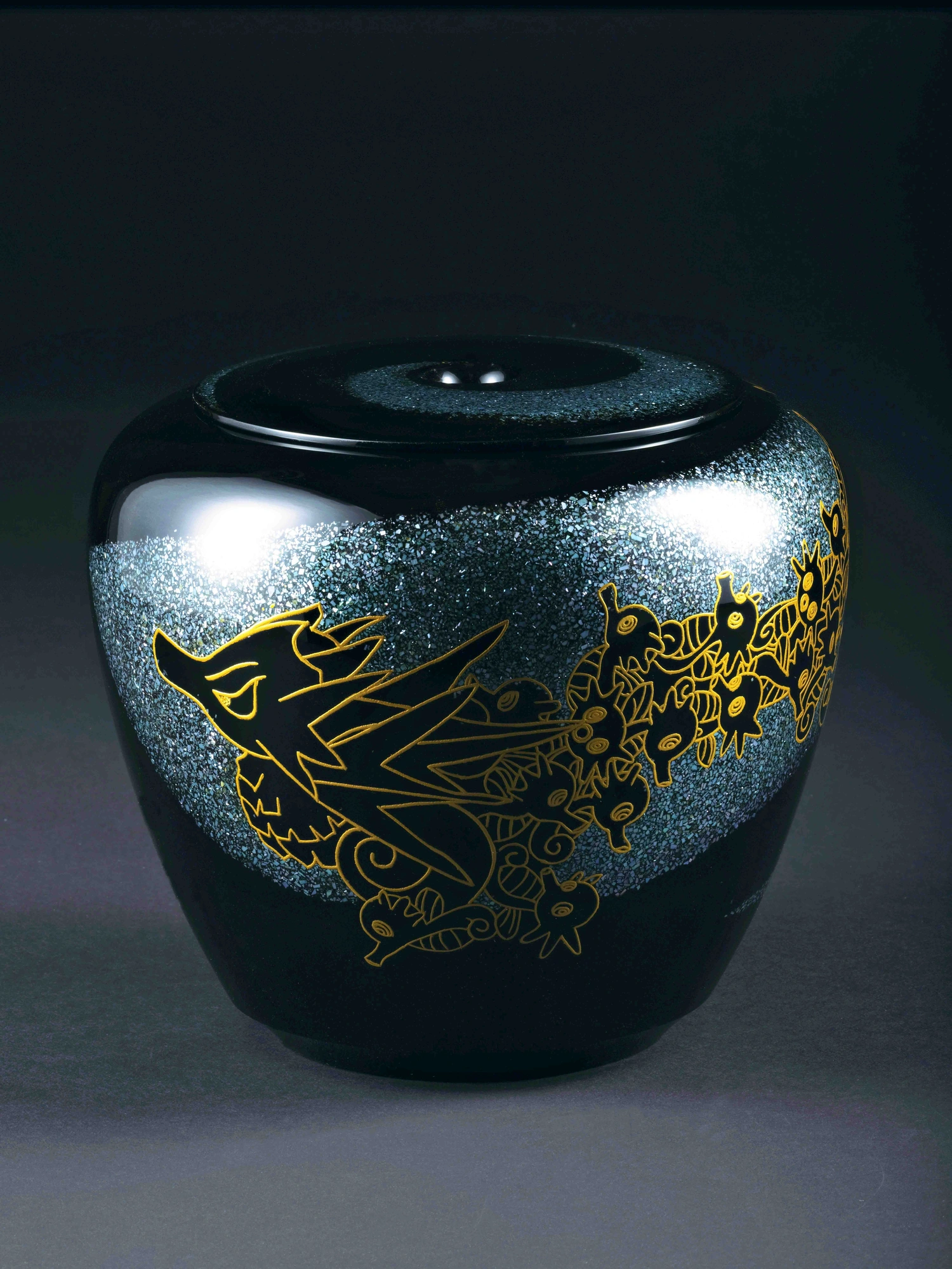 Lidded Jar, "Play," Kanshitsu, Maki-e and Raden Inlay