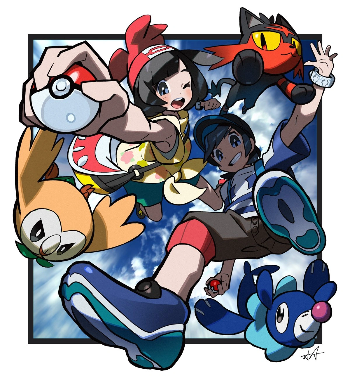 Elio, Selen, Rowlet, Litten, and Popplio