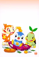 New Year Postcard 2007 - Piplup, Turtwig, Chimchar