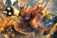 腕の 先から 摂氏2000度の 火の玉を 発射する。 火山の 火口を 住処にする。